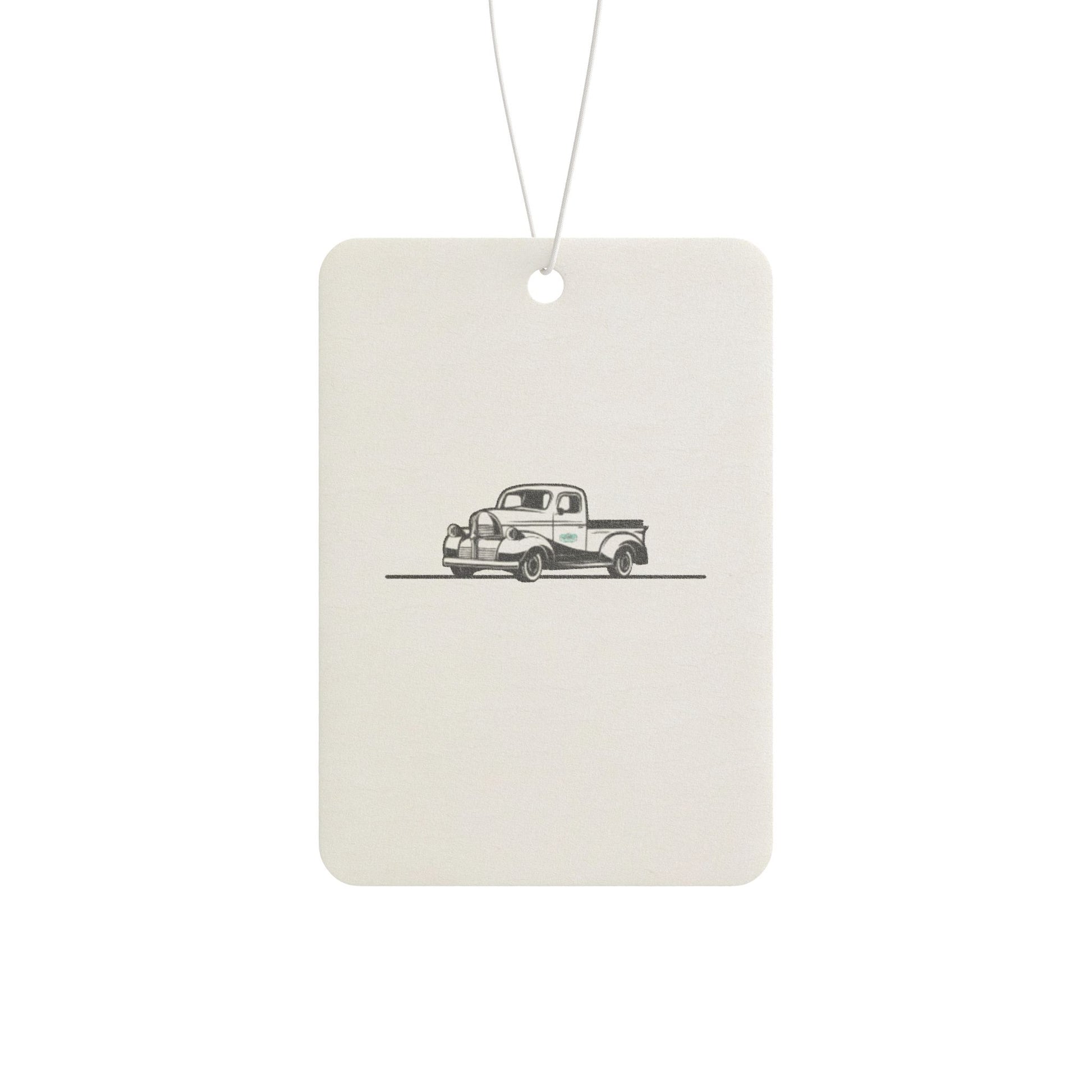 A small, hand-hung diffuser that brings a quiet, nostalgic mood to your drive. Printed front and back with a simple vintage pickup illustration, this air freshener slips into rearview mirrors or vents and fills the car with your choice of three distinctive scents: the crisp, leather-tinged familiarity of 'New Car'; the cool, resinous calm of 'Pine'; or the bold, fresh brightness of 'Black Ice'. Lightweight and made from sturdy 80 pt. paper board, it adds a subtle decorative touch while softening the ride with carefully layered fragrance notes — apple and muguet against warm leather, balsam fir with green apple, or sharp citrus with icy accords. Use it during long road trips, weekend drives to the cabin, or every morning commute to make the car feel lived-in and welcoming.